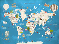 Educational World Map Wallpaper For Kids Room 3D Playful