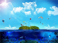 Kids Room Wallpaper Dolphin And Seagulls 3D Retro Playful
