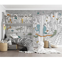 Safari Cheerful Animals Kids Room Wallpaper