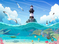 Sea Lighthouse 3D Kids Room Wallpaper With Seagulls