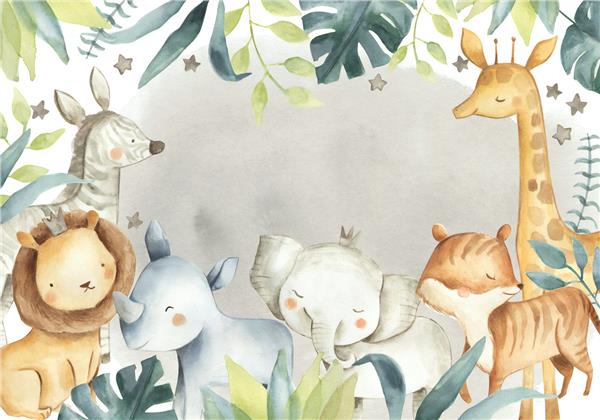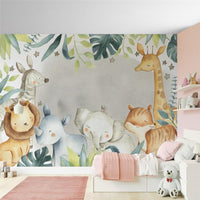 Sweet Animals and Tropical Leaves Baby Wallpaper