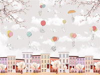 Sweet Little Ones and Flying Balloons Kids Room Wallpaper