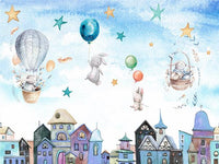 Vibrant 3D Flying Balloons Sky And Stars Kids Wallpaper