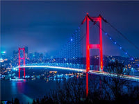 Istanbul Bosphorus Bridge Wallpaper Night Illuminated Home