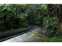 3D Railway Wallpaper Between Trees For Cozy Living Room