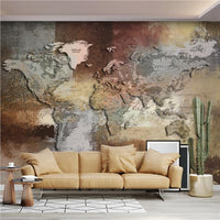 Premium Embossed World Map Wallpaper For Home Office