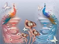 3D Wallpaper Pearl Flower Peacock Design Customizable Home